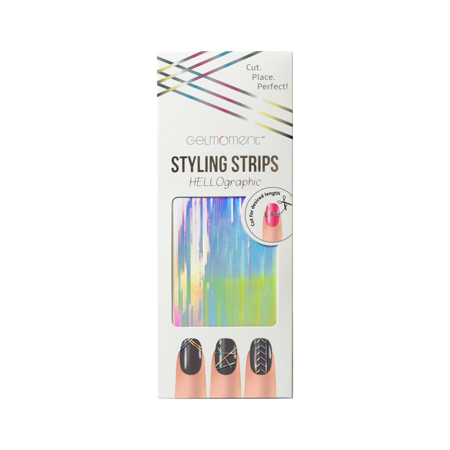Add a touch of elegance to your GelMoment nails with GelMoment HELLOgraphic styling strips. Conveniently prepared on a sheet for maximum ease of use, minimal waste and extra comfort. These strips will be the perfect addition for every nail connoisseur.
